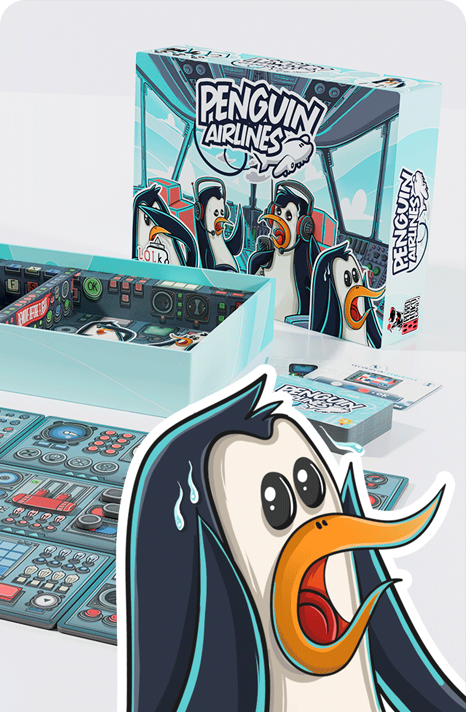 En Penguin Airlines destaca una mecánica de agilidad visual y comunicación en combinación con la inquietante presión del tiempo. Un divertido Party Game para jugar por equipos, de 2-8 jugadores.